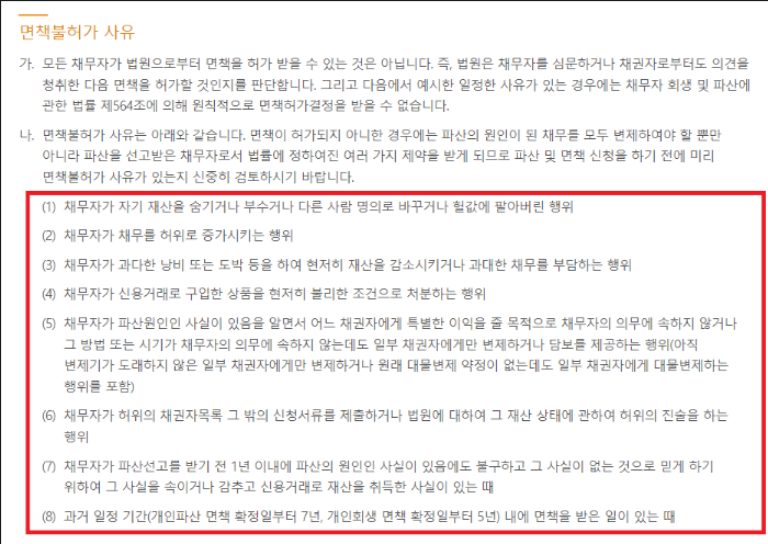 ·면책 불허가 사유에 해당되는 사항이 없어야 함