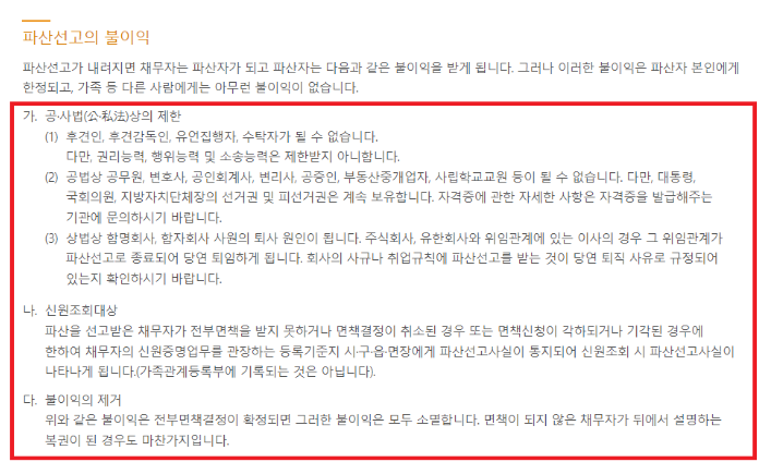 개인파산의 불이익